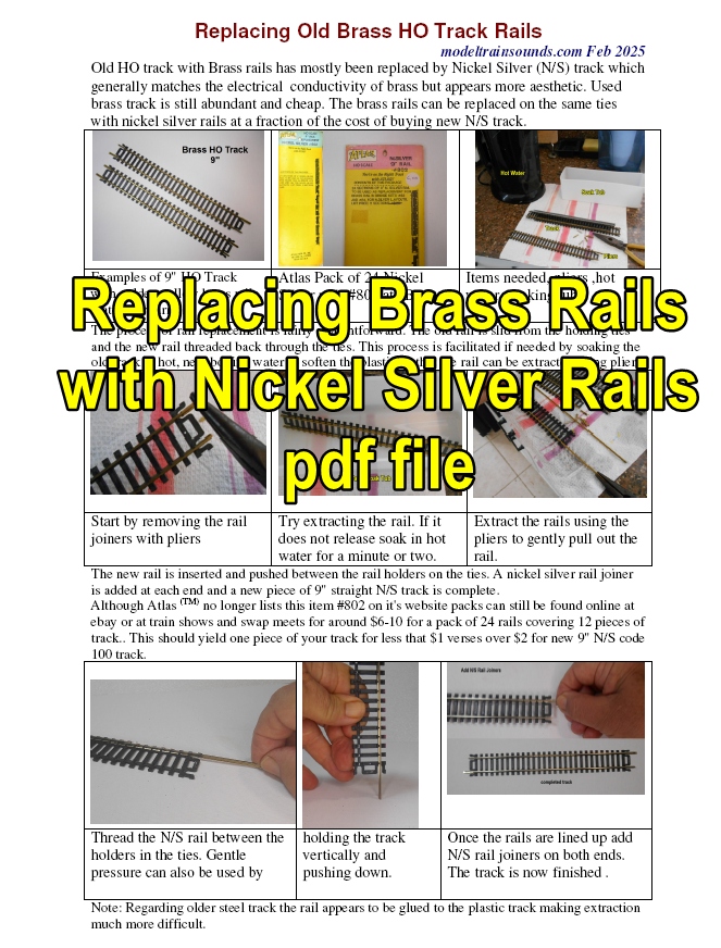 Project 28 Replacing HO Brass Track Rails with Nickel Silver Rails This Project explains how to replace old HO brass 9" Straight track rails with new nickel silver rails using a simple technique..