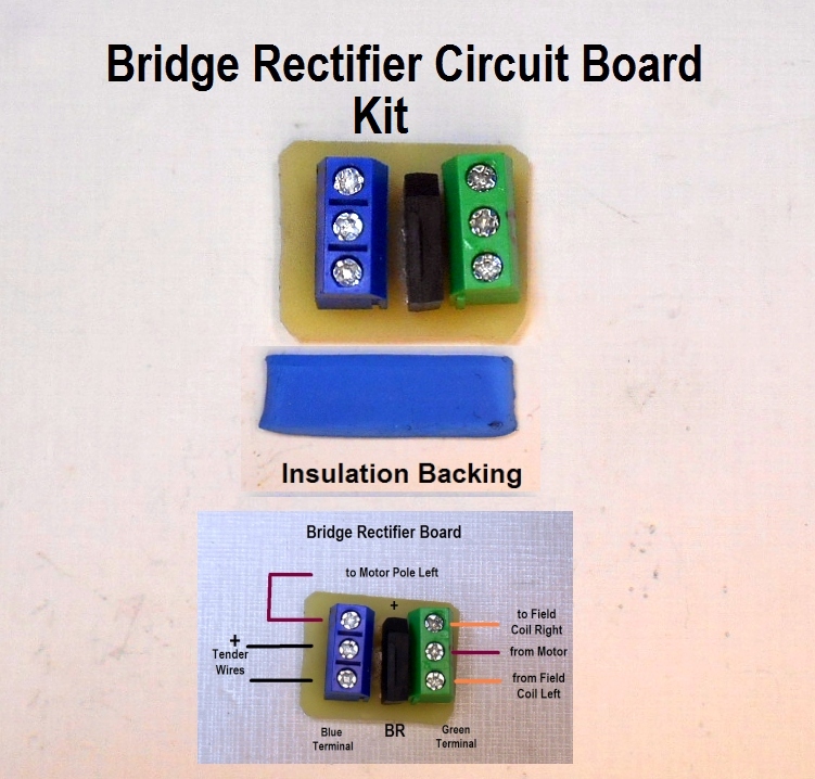 Project 27B S/O Scale Convert to DC Modification * Circuit Board with Bridge Rectifier to enable forward and reverse using a DC controller |